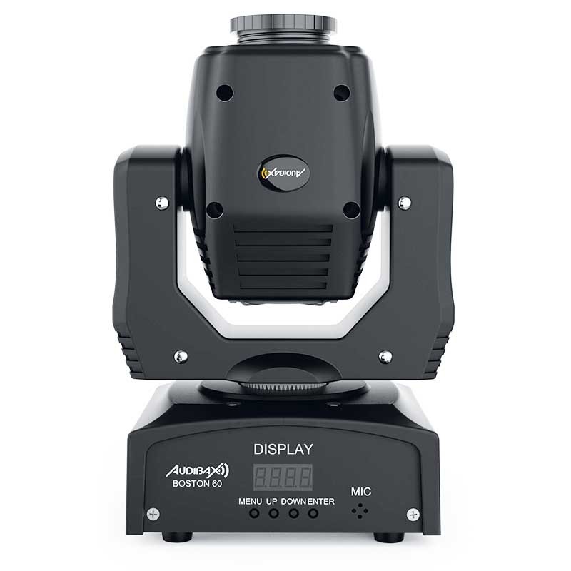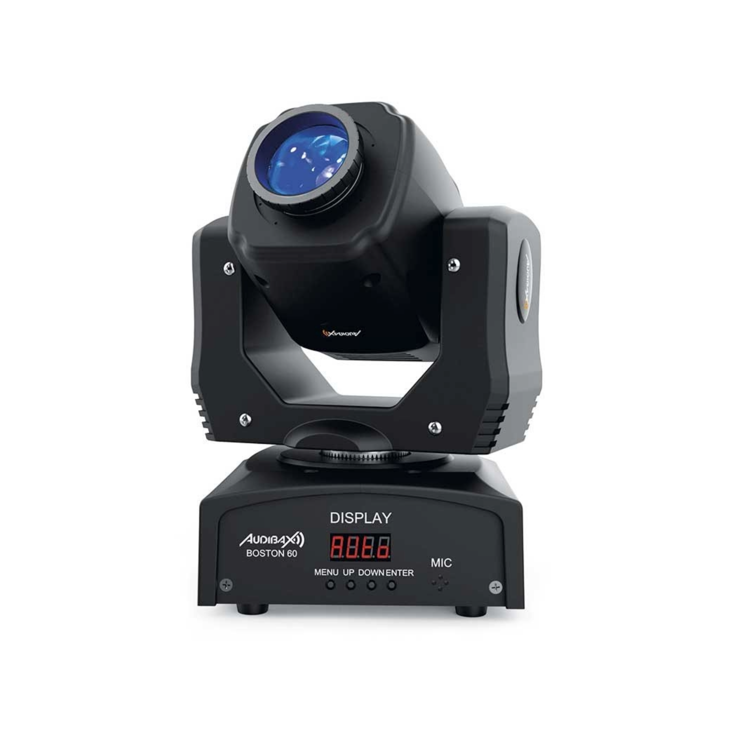 La Audibax Boston 60 es una cabeza móvil de tamaño medio equipada con una potente fuente de luz LED de 60 W, capaz de ofrecer una gran intensidad y definición en cada proyección. Su diseño compacto y ligero la convierte en una opción muy práctica y versátil, perfecta para generar efectos visuales dinámicos mediante combinaciones de colores y gobos personalizables.