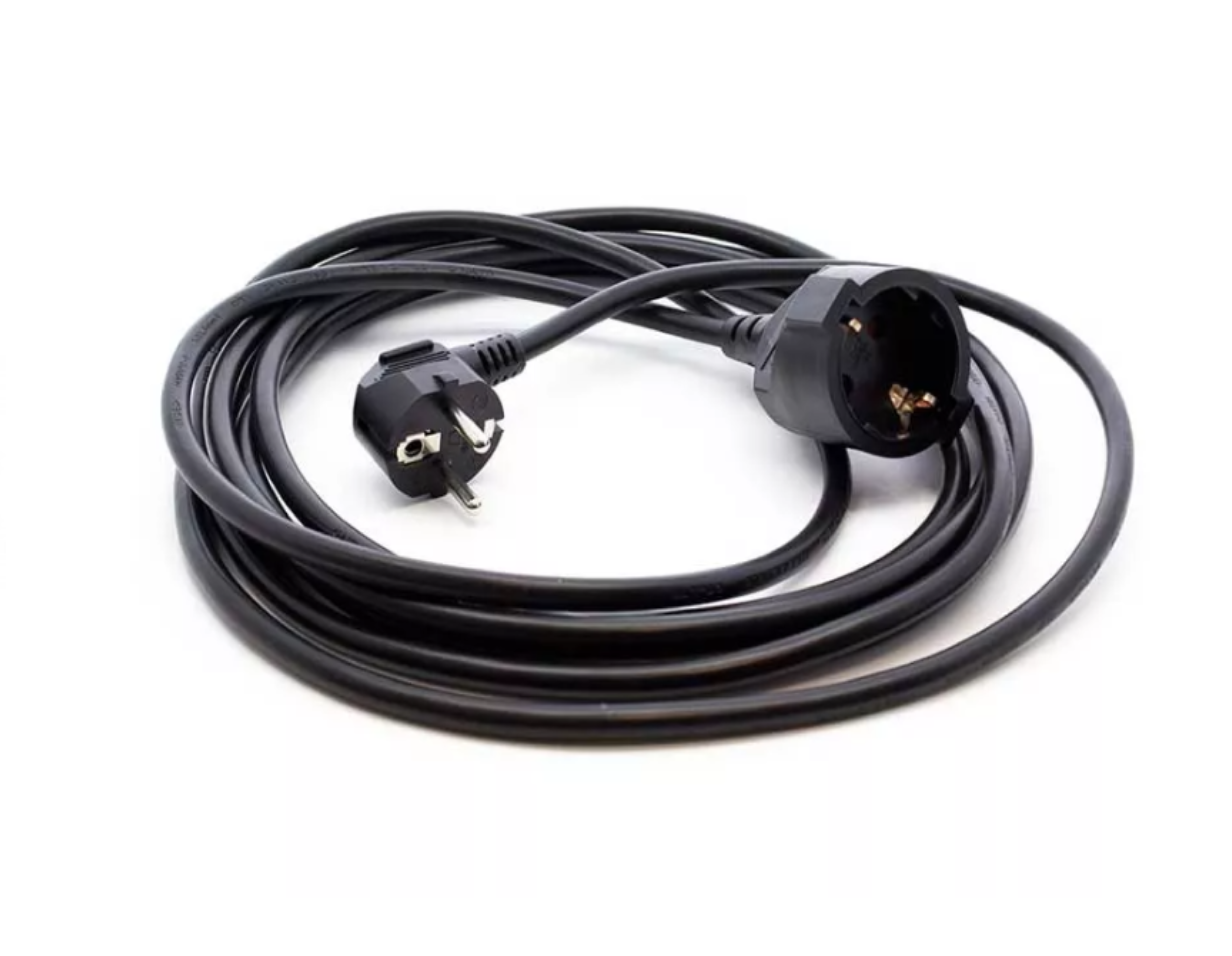 Cable de corriente (alargo) con enchufe estándar europeo (schuko) macho – hembra de 10 metros.