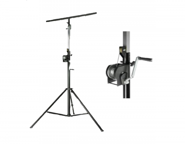 El modelo SWU400T es un soporte de iluminación, con su correspondiente ajuste de altura a través de una manivela. Debido a su alta capacidad de carga de 85 kg y la posibilidad de extraer la barra en ‘T’ así como el diámetro de tubo de 35 mm, lo hacen ideal como soporte de altavoz